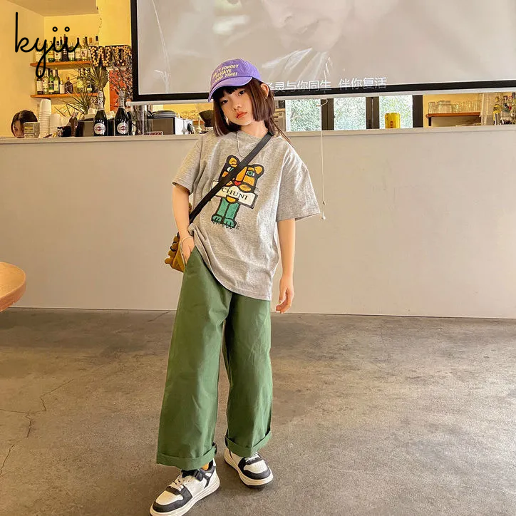KYII Girls short sleeved T-shirt Summer children cartoon loose Top ky22083