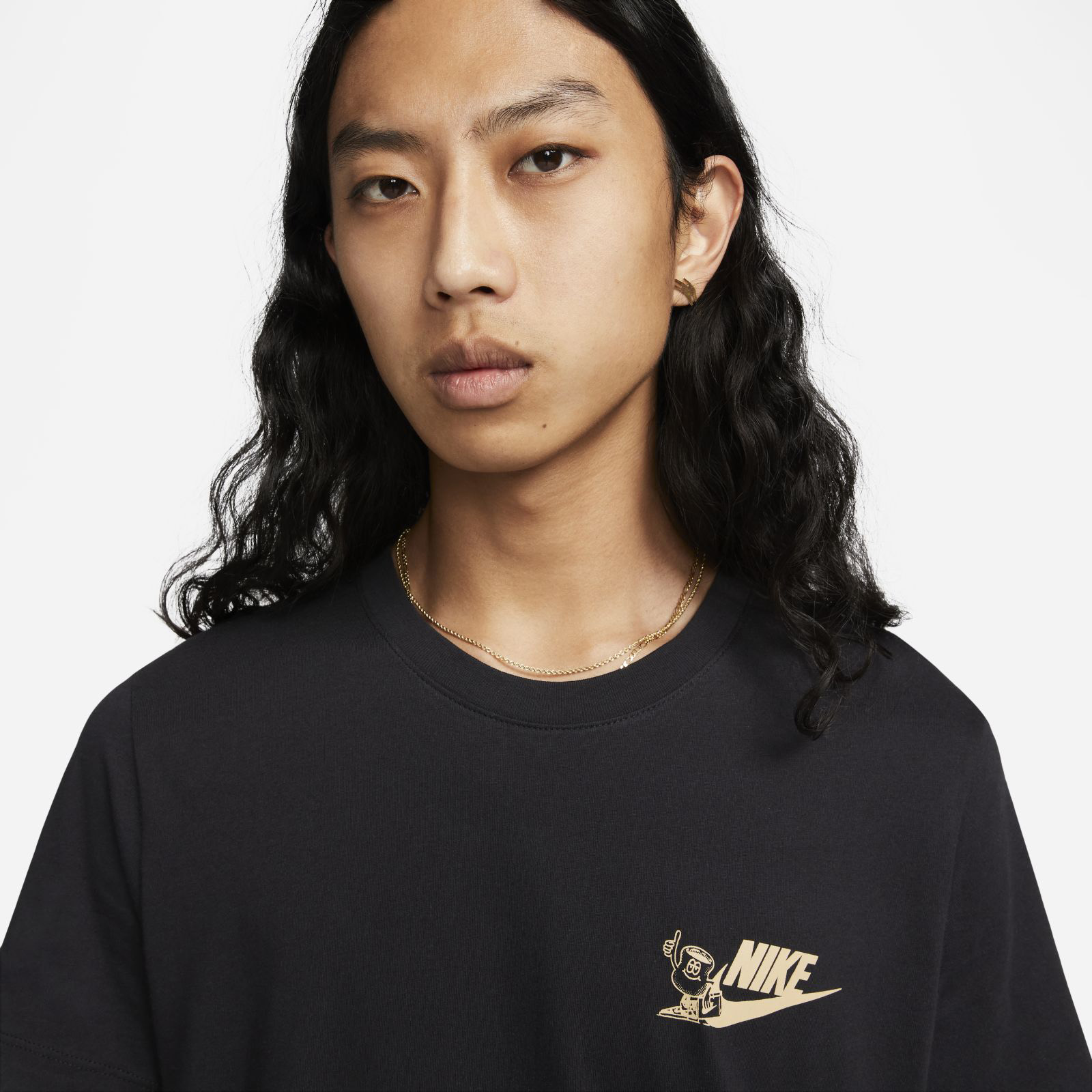 Rise and grind with the Swoosh and keep your style as fresh as your coffee beans. Made with our soft, lightweight cotton in a relaxed fit, this tee keeps it casual and comfy all day. Printed cafe-inspired graphics get you going in the morning.