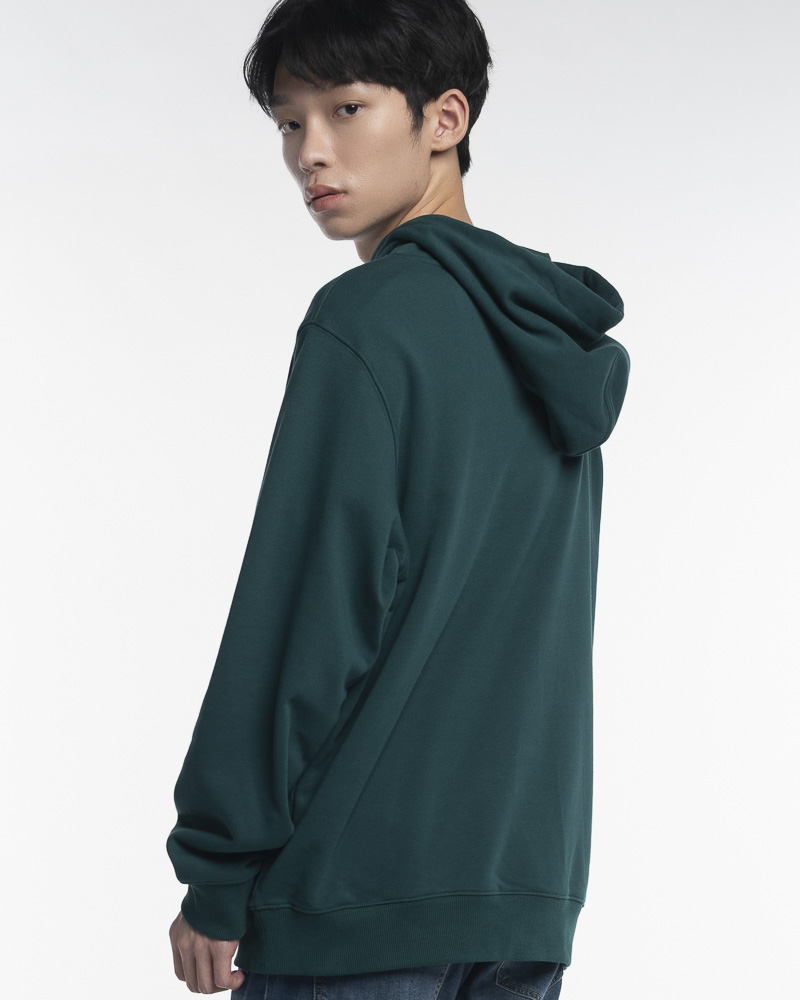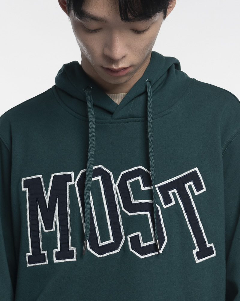 Yishion Men Solid Coloured Pullover Hoodie with Kangaroo Pockets and MOST Slogan Patch (Dk. Green)