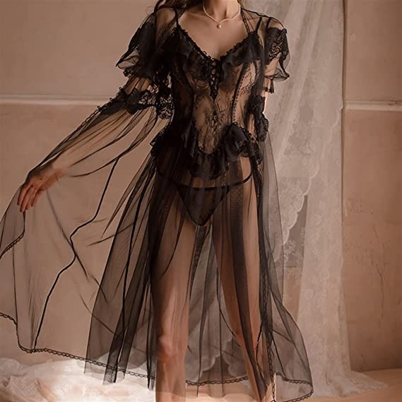 MMLLZEL Palace Private Lingerie Black Lace Thin Section of The Nightgown Chiffon Nightgown (Color : B, Size : M Code)